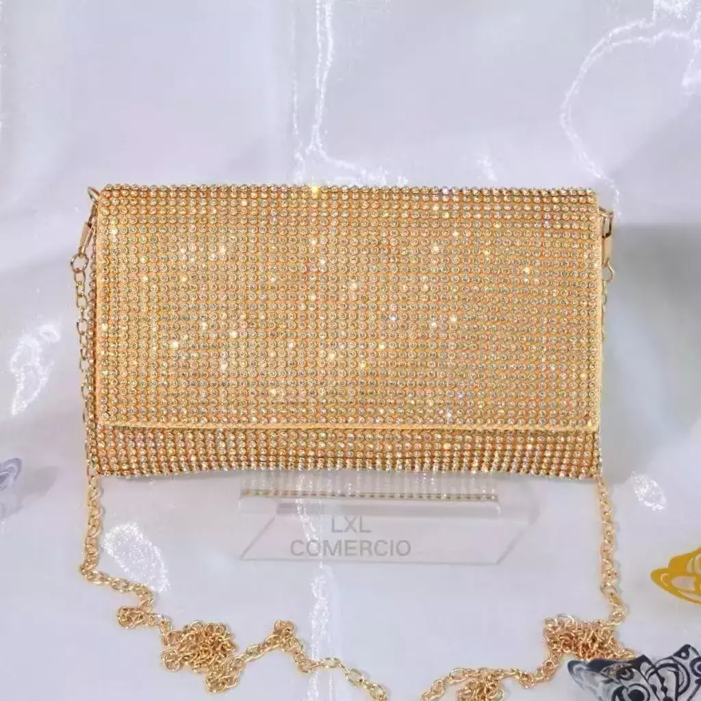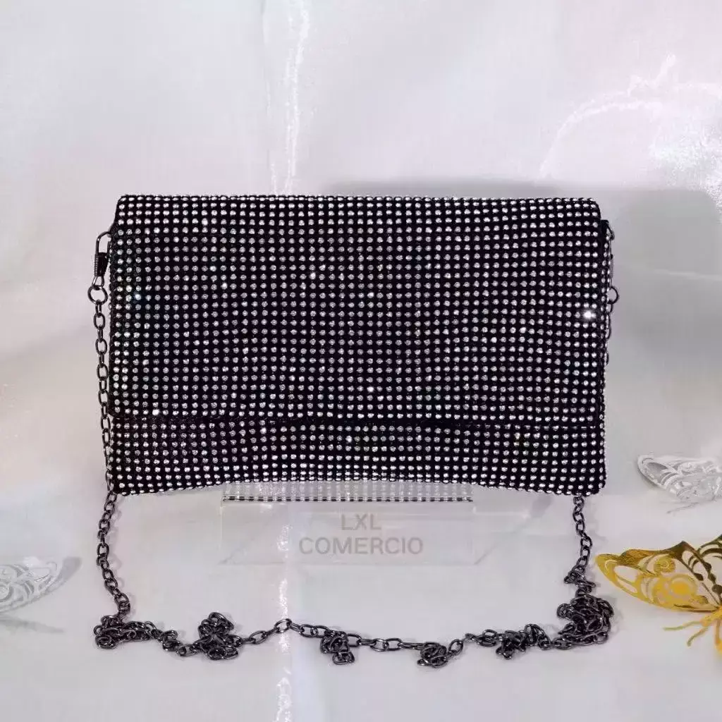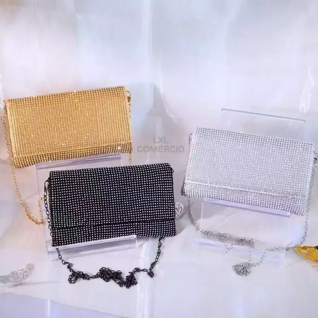 Detalhes Exclusivos: Clutch decorada com strass brilhantes, criando um efeito de diamantes cintilantes que iluminam qualquer look.