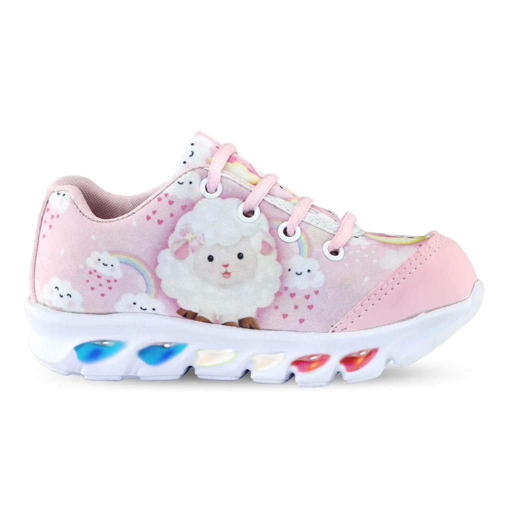 Design moderno e divertido: Os detalhes de luzinhas nos tênis criam um visual encantador, ideal para meninas que adoram se destacar e brilhar em qualquer ocasião. Os temas de sereia e ovelha trazem um toque lúdico e delicado, combinando com diferentes estilos de roupa.