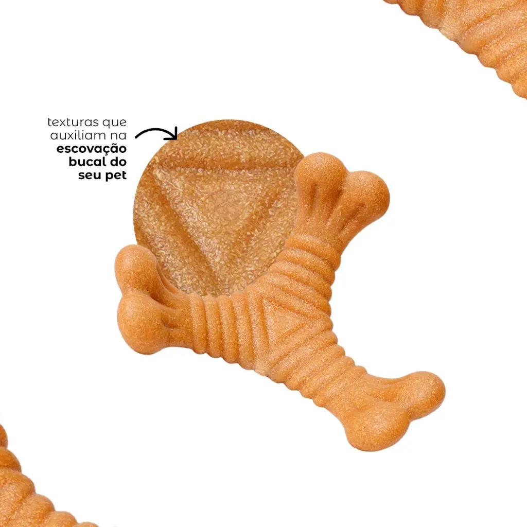 Disponível em três formatos que são ideais para auxiliar na limpo dos dentes e massagear as gengivas do cão, auxiliando a promover uma melhor saúde bucal e prevenindo problemas como tartartaro e gengivite, sua textura proporcional uma sensação agradável durante a mastigação, estimulando o interesse do animal e oferecendo alívio para as gengivas.